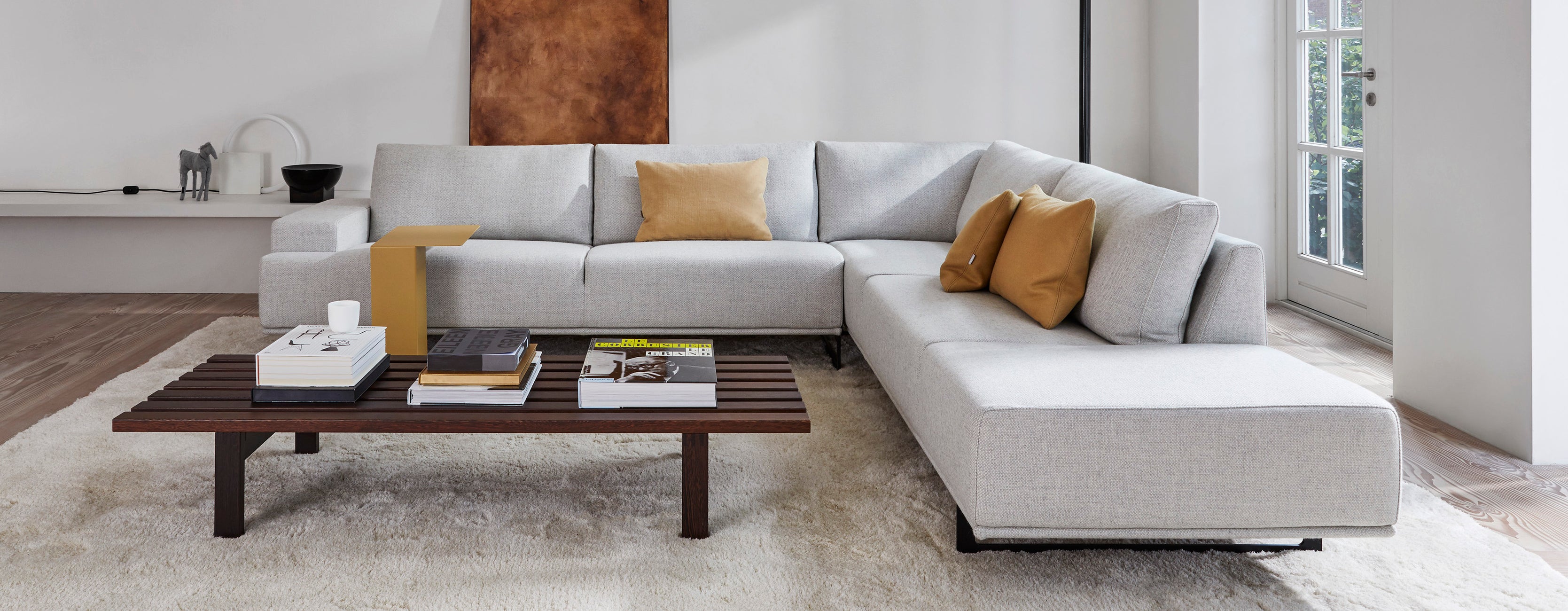 Besides the corner sofa, both models are available as an armchair and a regular sofa in various versions. Furthermore, there is a wide choice of fabrics and for the legs, you can choose from various options in colour or wood.