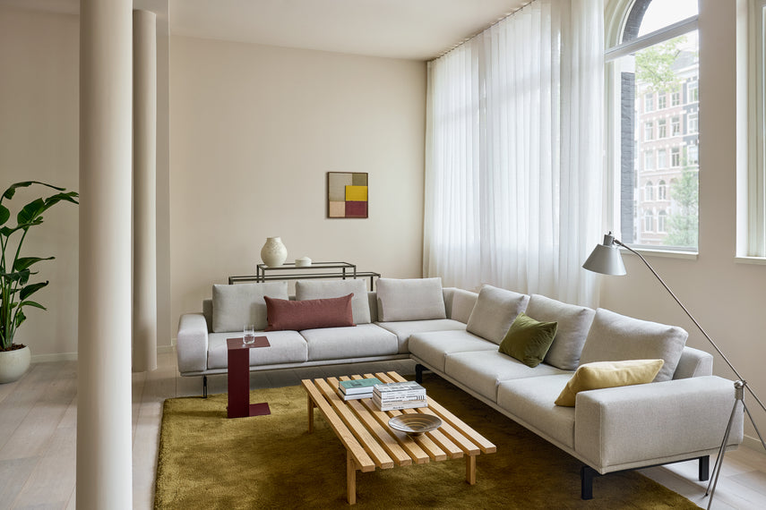 De Float hoekbank wordt op duurzame wijze geproduceerd, met aandacht voor materiaalgebruik en een modulair ontwerp. Het frame bestaat voor 75% uit gerecycled aluminium en is volledig herbruikbaar, wat bijdraagt aan onze circulaire productiedoelstellingen. De arm- en rugleuningen en kussens zijn eenvoudig te verwijderen, wat reparatie, recycling en herstoffering vergemakkelijkt. Door het tijdloze ontwerp, de hoogwaardige materialen en de mogelijkheid tot herstofferen is de Float hoekbank een duurzame keuze voor de toekomst.
