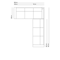 Totale breedte product: 202 cm (2,5-zits bank smalle arm, standaard zitdiepte), 282cm (4-zits bank smalle arm, standaard zitdiepte), kijk voor de afmetingen van andere varianten naar de uitvoeringen hieronder